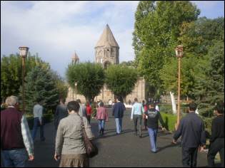 2.Tag: Sa, 01.09. Eriwan - Edschmiadsin Ankunft am frühen Morgen in Eriwan, Transfer zum Hotel und Early Check-in. Nach dem Ausruhen orientierende Stadtrundfahrt,Besuch der Hand-schriftensammlung Matenadaran. Bummel über den Markt und Besuch des Kunsthandwerker- und Flohmarktes. Am Nachmittag Fahrt nach Edschmiazin, dem Sitz der Katholikos. Auf dem Rückweg nach Eriwan Besichtigung der Kirchenruinen von Swartnots. Abendessen und Übernachtung in Eriwan.