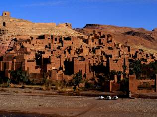 Erstes Ziel ist Tinerhir, das Eingangstor zur Todra-Schlucht. Sie fahren in die Schlucht hinein, das letzte Stück gehen Sie zu Fuß zwischen den roten, bis 300m hohen Felswänden bis zur engsten Stelle der Schlucht. Dann folgen Sie der „Straße der Kasbahs“ - da und dort faszinieren Geländeformationen, Oasen und Dörfer und immer wieder beeindrucken die satten Erdfarben und die ockerfarbenen Fassaden der Wohnburgen. Über Boumalne und dem Dadès-Tal entlang erreichen Sie Ouarzazate.